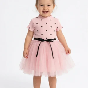 Yılbaşı ve Noel temalı tasarımıyla çocukların yeni yıl coşkusunu yansıtan şık ve eğlenceli kız bebek elbisesi.