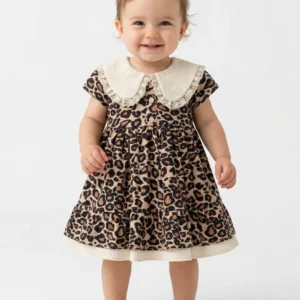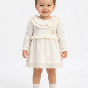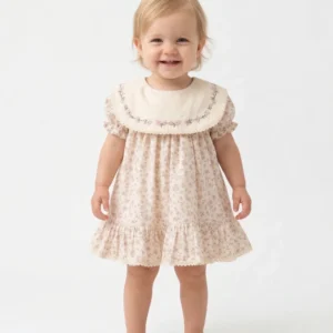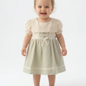 Kız Bebek Fiyonk Desenli Güpürlü Müslin Elbise