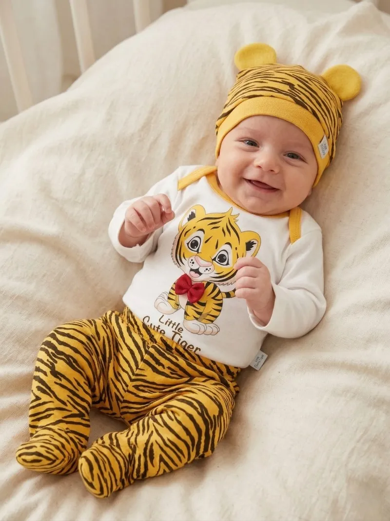 Kaplan Baskılı Badili Sarı 3lü Bebek Takımı