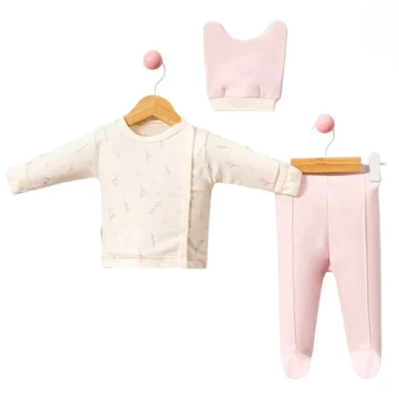 Kız Bebek Hastane Çıkışı Çiçek Desenli Pembe 3'lü Zıbın Takımı