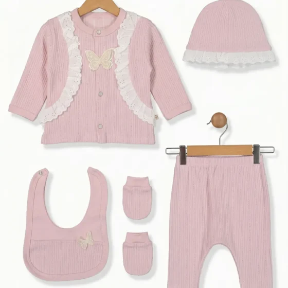 Kız Bebek Pembe Kalp Desenli 5li Hastane Çıkışı Seti