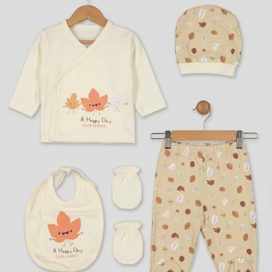 Kız Bebek Yaprak Desenli Hastane Çıkışı 5 Li Set