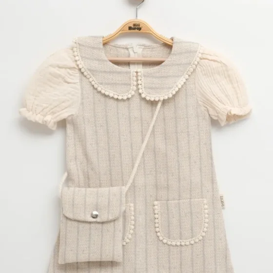 Kız Çocuk Kısa Kollu Keten Elbise ve Mini Çanta
