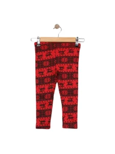 Bu geyik desenli kız çocuk tayt, yılbaşı döneminde miniklerin gardırobuna renk ve eğlence katmak için harika bir seçenektir!